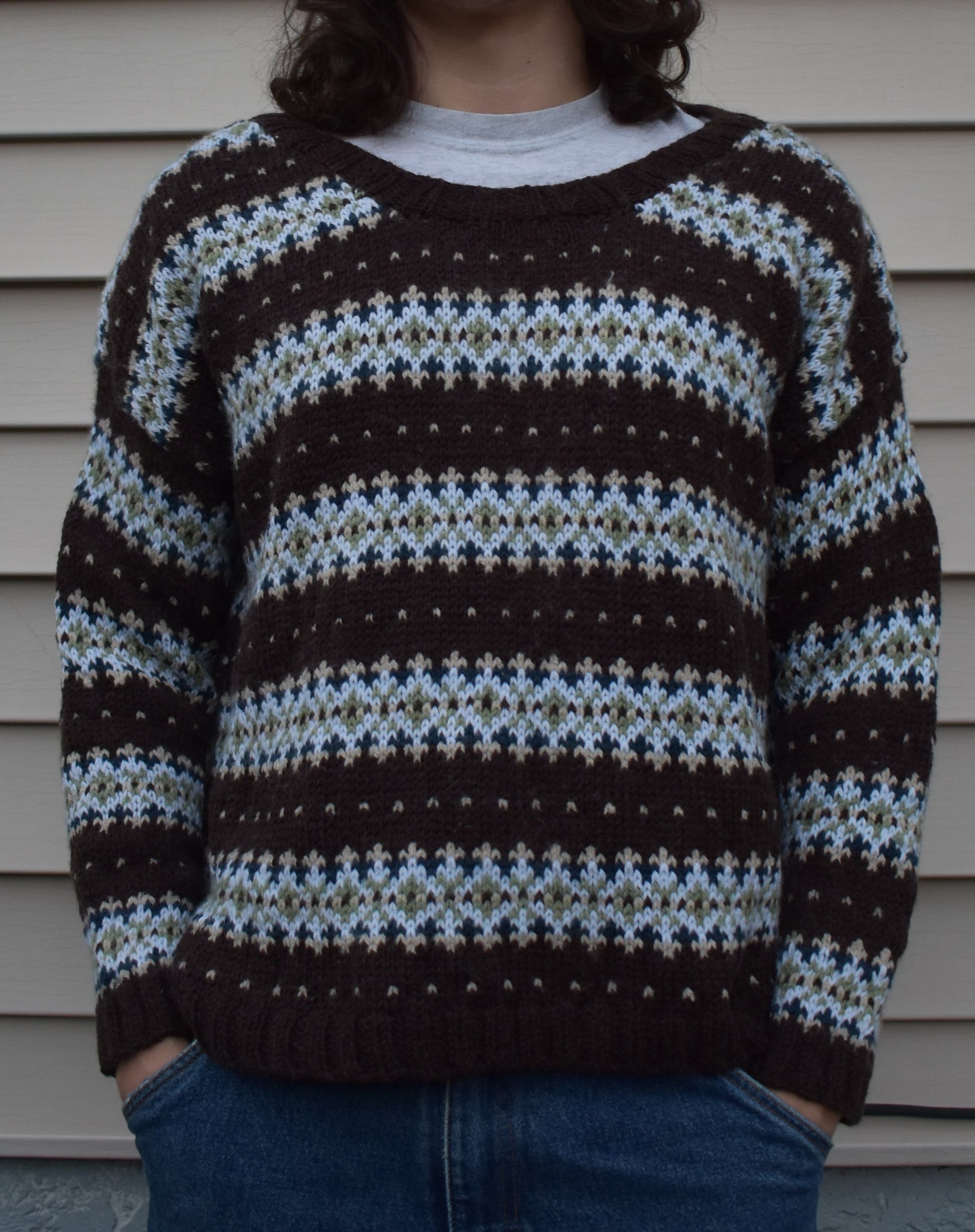 The Brigid Sweater is a fair isle drop shoulder sweater with a boxy unisex fit and is available from youth to adult sizes. Named after the Celtic goddess, Brigid, a healer and poet, she is often associated with the birch tree, a symbol of new beginnings. The Brigid sweater features bands of colourwork, separated by a section of stockinette in the main colour and a single row of colourwork, providing a break between the fair isle motifs, and emulating the bark of her sacred tree.