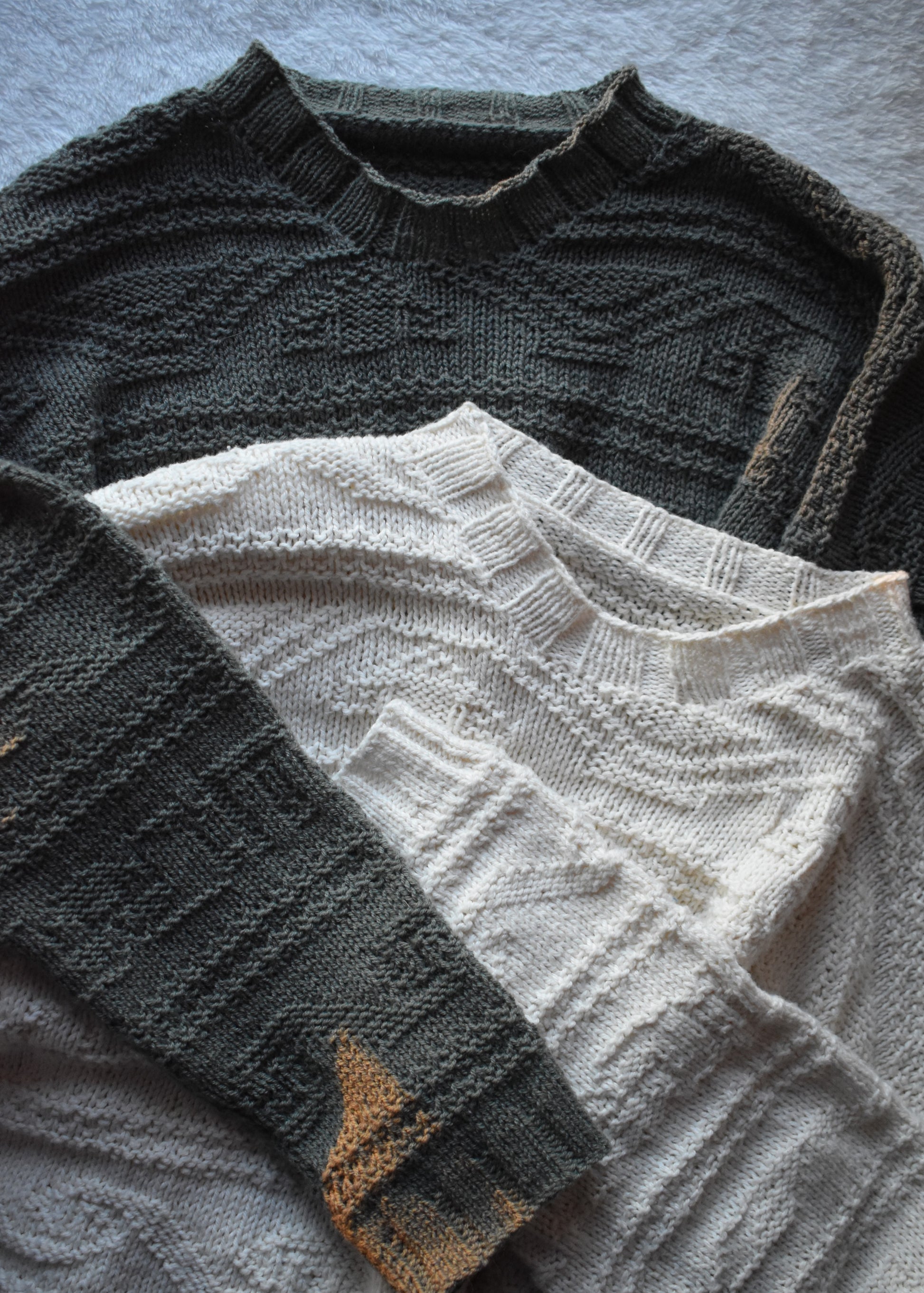 The Paris Pearl Sweater is a unisex, textured drop-shoulder sweater with a slightly oversized fit. This design features timeless motifs intended to become an heirloom piece, to be passed down through generations. The construction of this sweater is knit in panels - front, back, and sleeves - which are seamed together. The neckline is worked in the round after the panels have been assembled. For knitters who prefer a seamless construction, instructions for a seamless option are included.